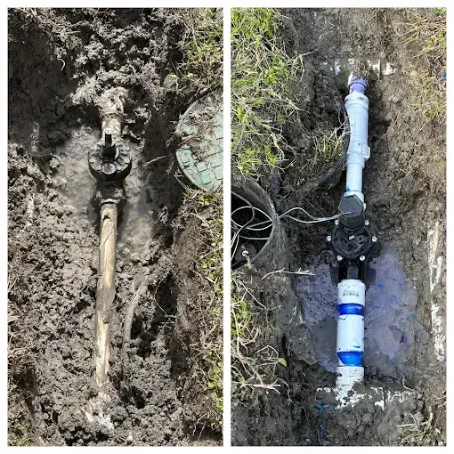We repair drip lines and pipe leaks to restore proper irrigation.